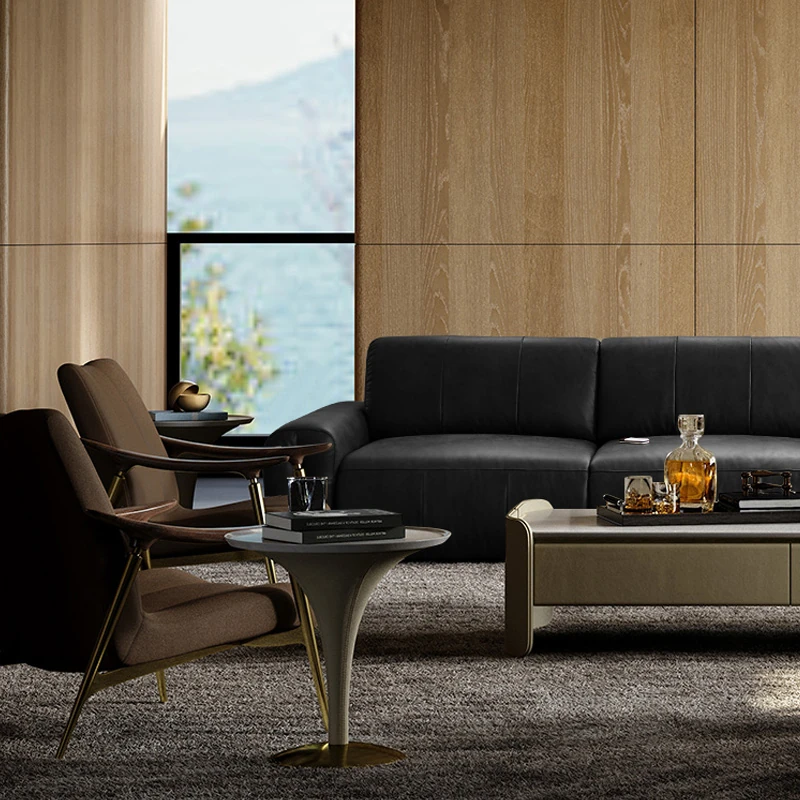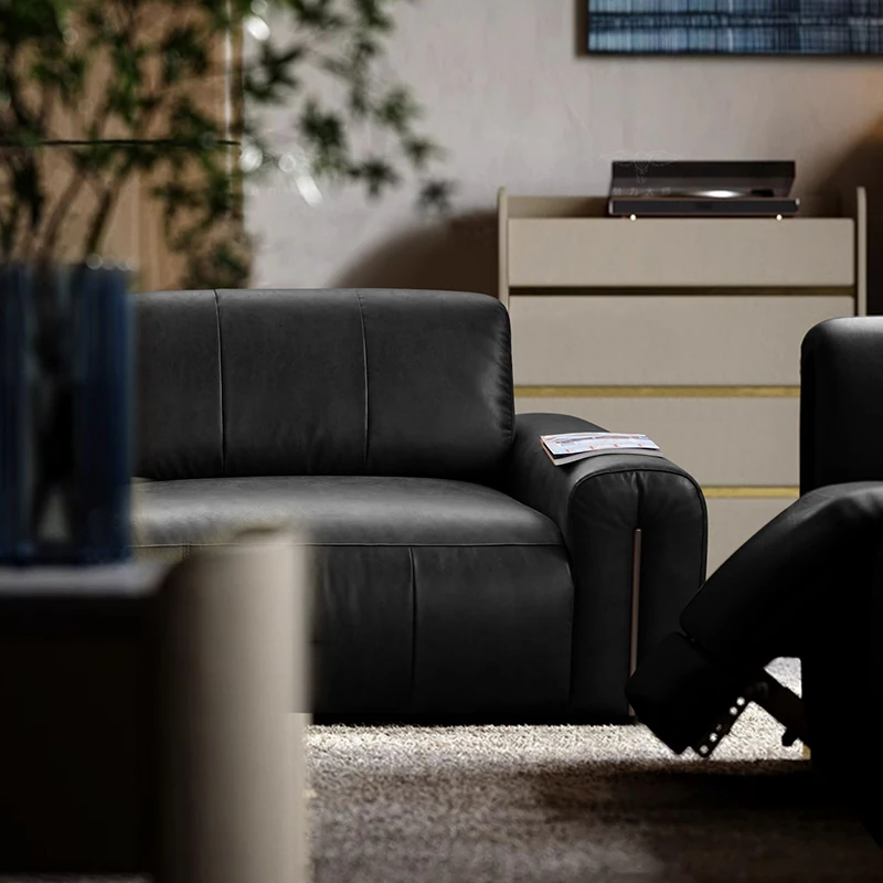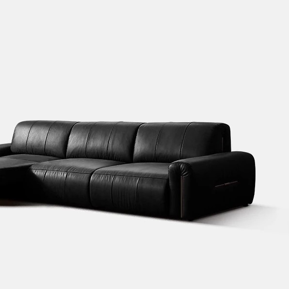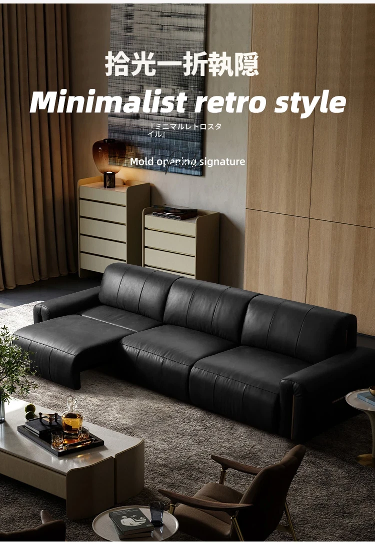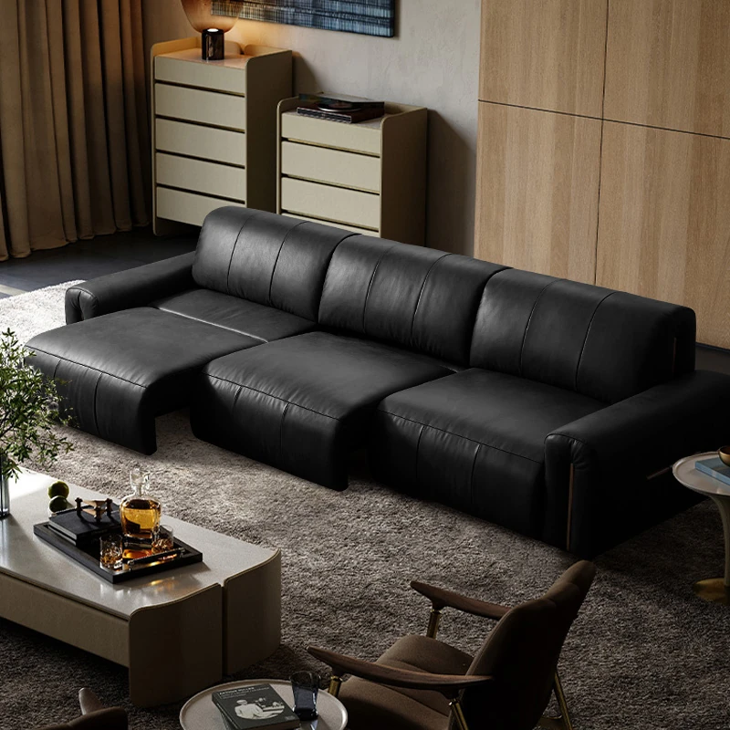 機能的な真皮ソファ 小型スペース向け 電動調整可能なフレンチヴィンテージスタイル 高級牛革 ブラックレザーソファで、快適さとスタイルを両立!