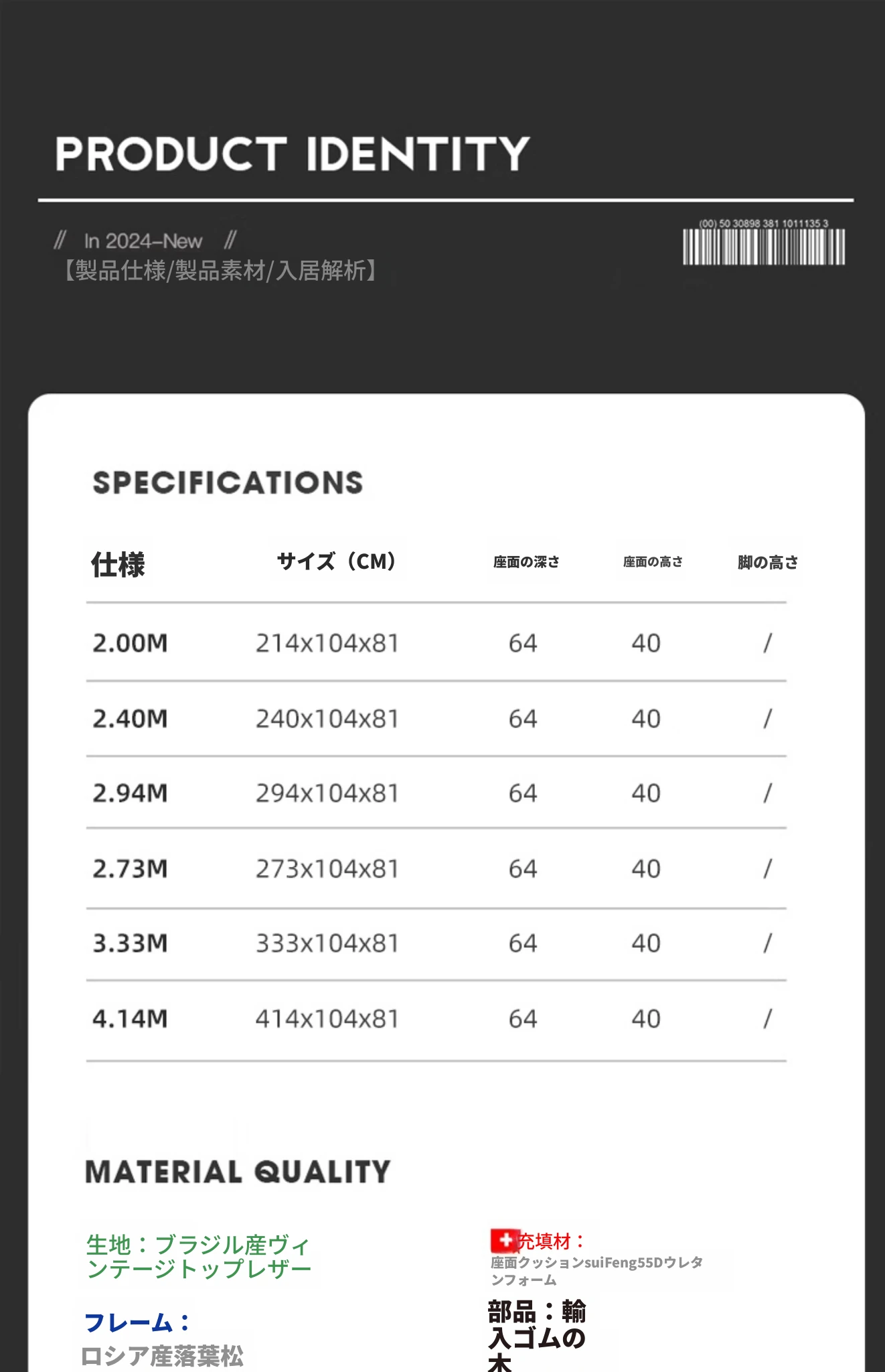 2.4メートル機能ソファ/輸出版品質/超合成皮革/S+級皮質