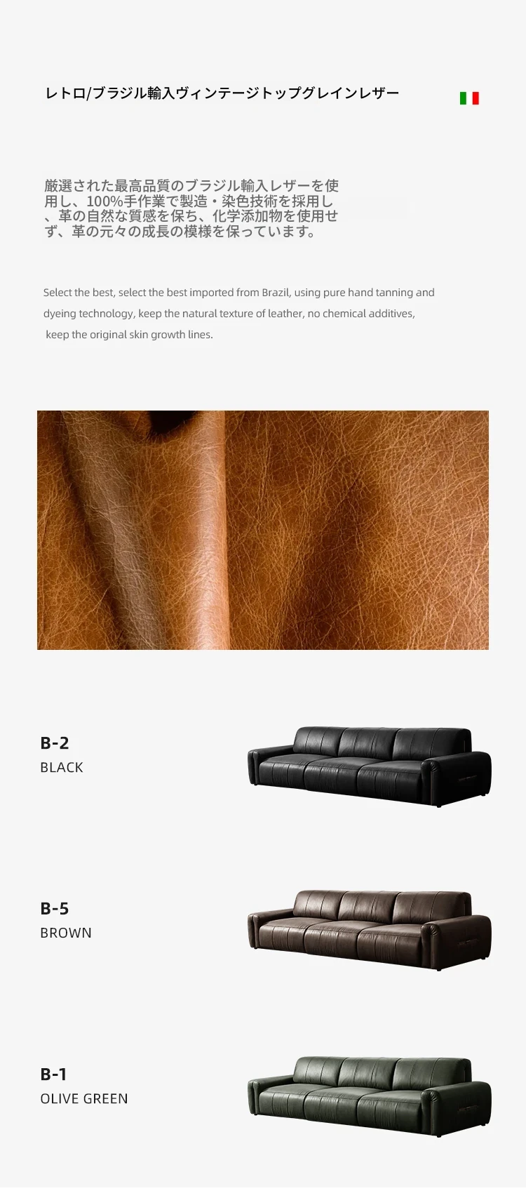 2.0メートル機能ソファ【オイルワックス本革】/輸出版品質/S+級皮質
