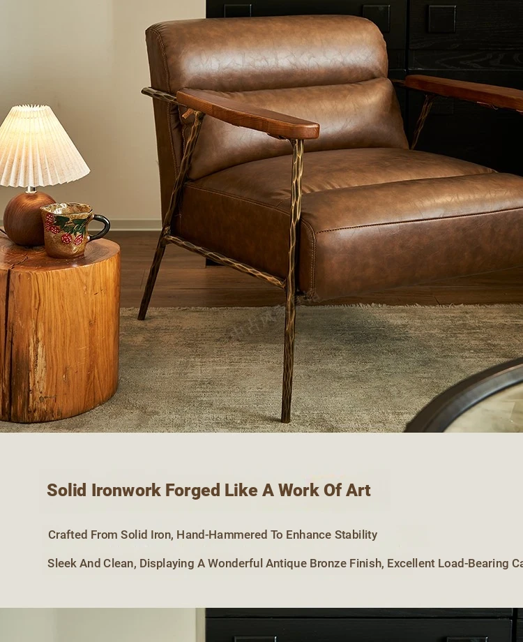 Vintage Solid Iron Tiger Chair - Retro Leather Lounge Chair for Living Room by Designer, Perfect for Relaxation and Style