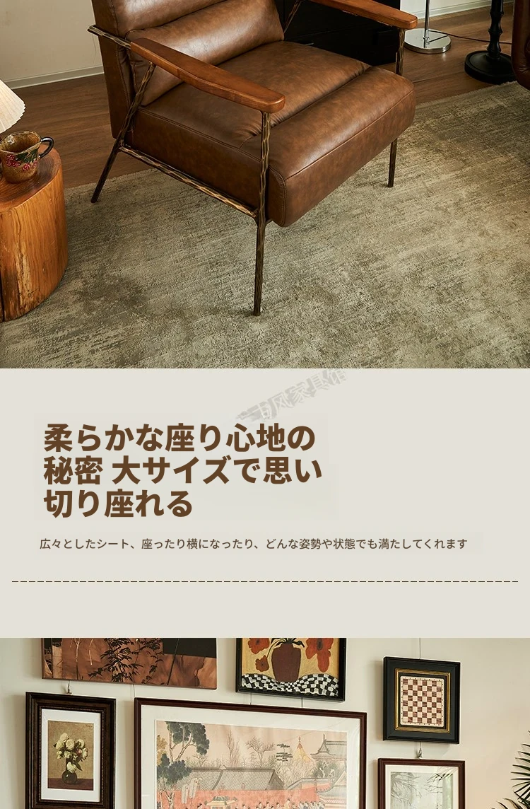 ヴィンテージ風のソリッドなトラチェア|アイアン製リラックスチェア|レトロな一人掛け本革ソファ|デザイナーズスタイルのリビング用ロッキングチェア|おしゃれな空間を演出!