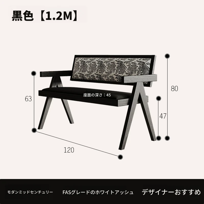 1.2メートル/FAS級高品質ホワイトアッシュ/黒フレーム