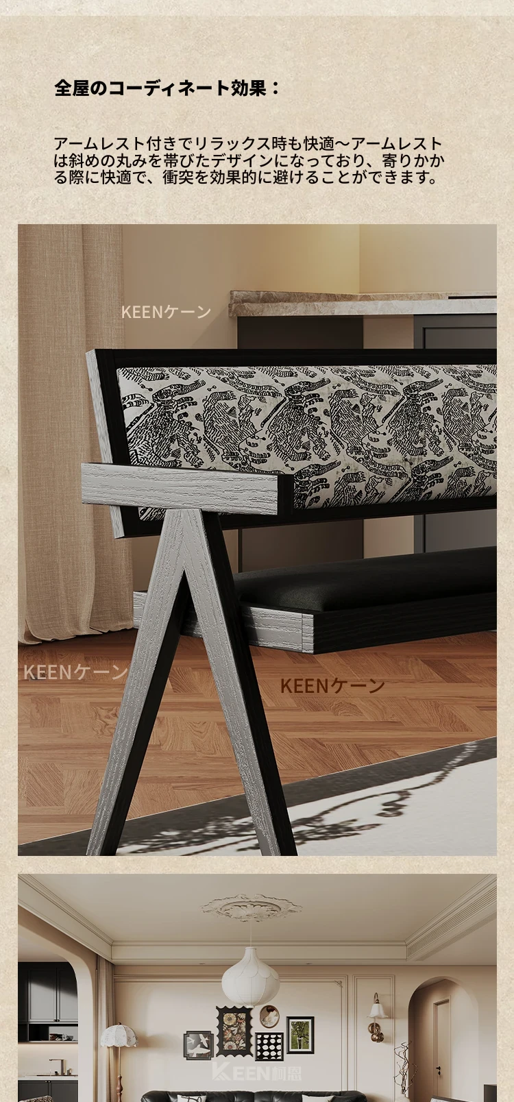 アンティーク風の無垢材ダブルベンチ - ホワイトアッシュ製のレストランテーブル用ロングベンチ。レトロなデザインの家庭用背もたれ付きアームレスト靴脱ぎベンチ。おしゃれで機能的な空間を演出します!