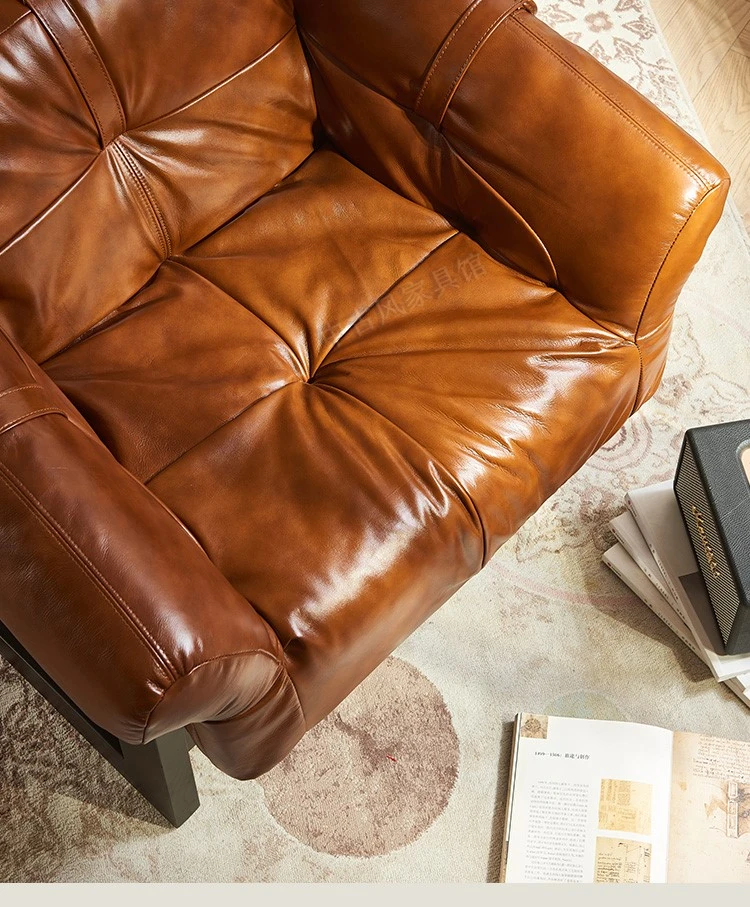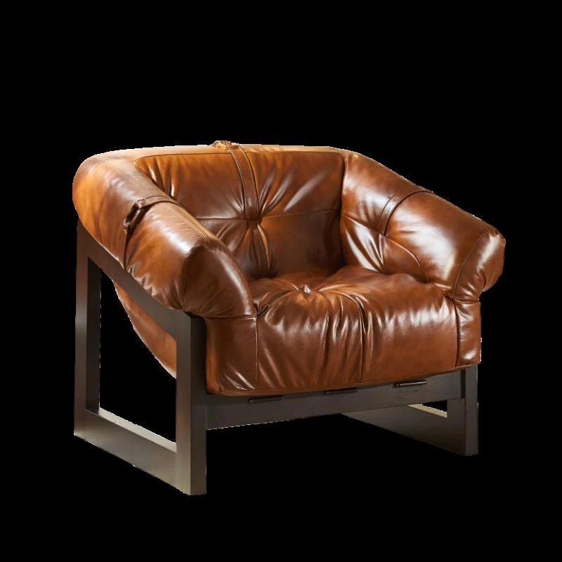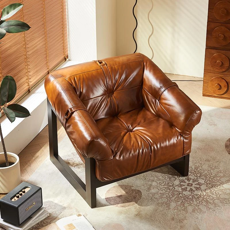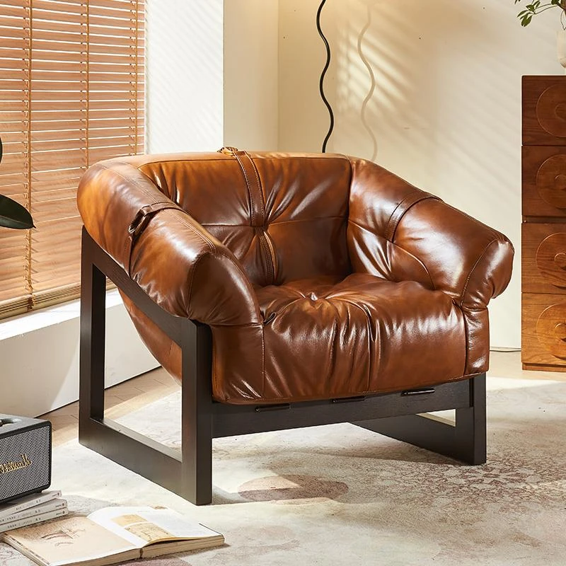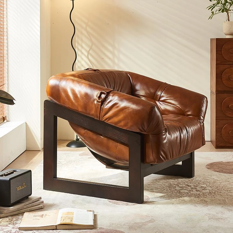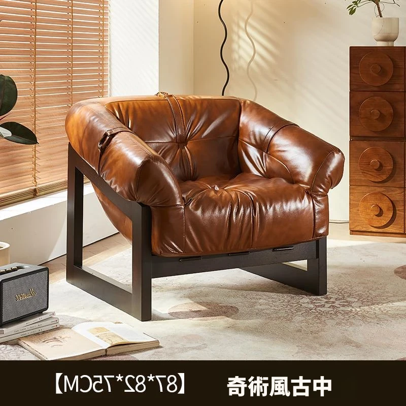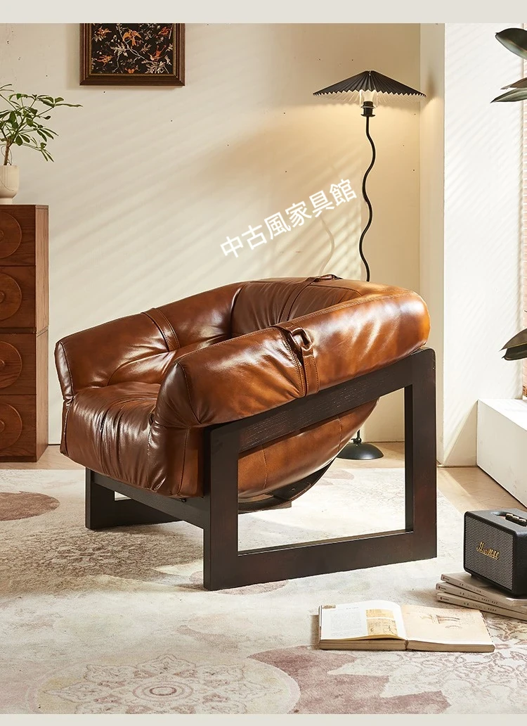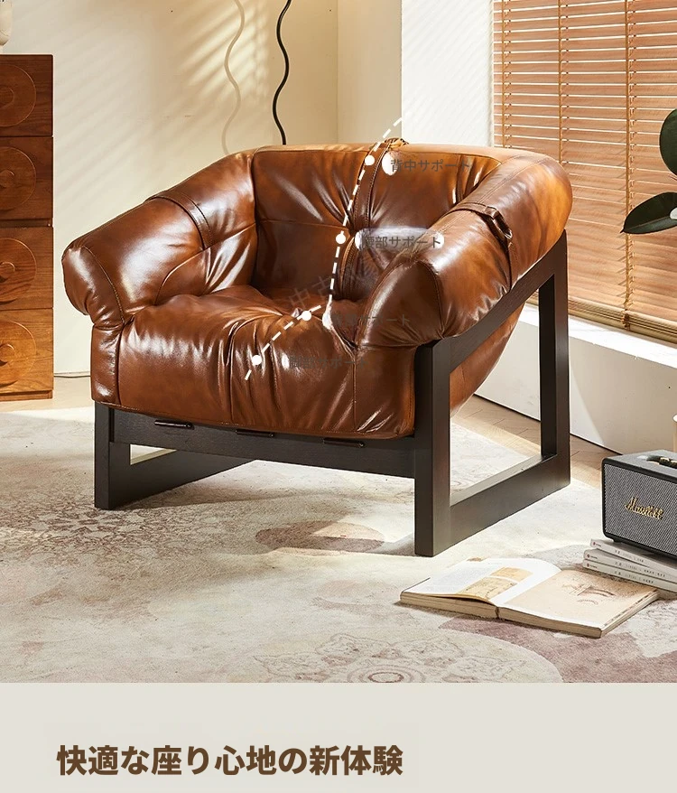 レトロな無垢材とオイルワックス仕上げの一人掛けソファ。宿泊施設やバルコニーに最適な、デザイナーによるリラックスチェア。おしゃれで居心地の良い空間を演出し、くつろぎのひとときを提供します。