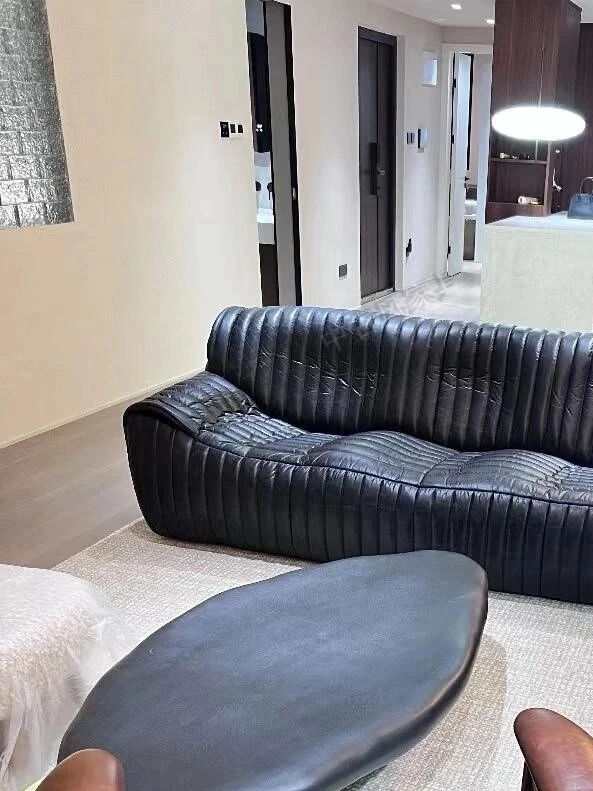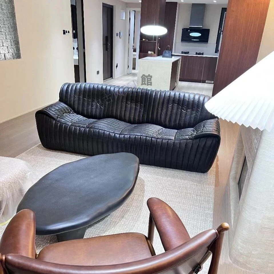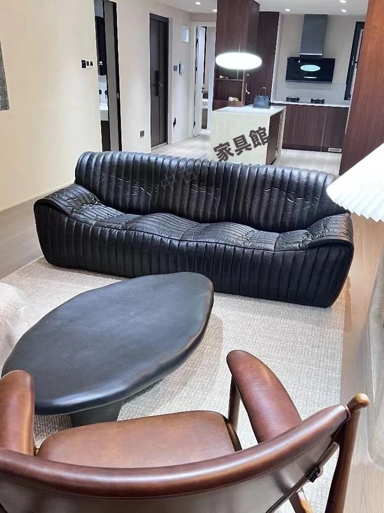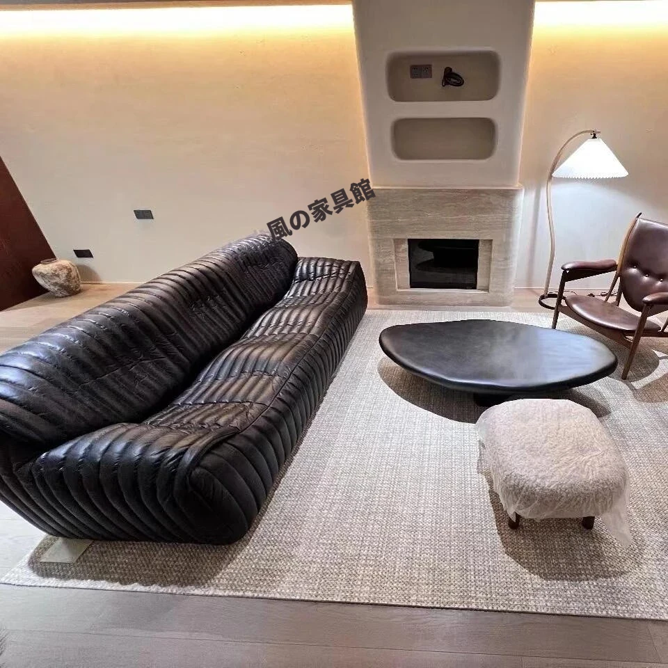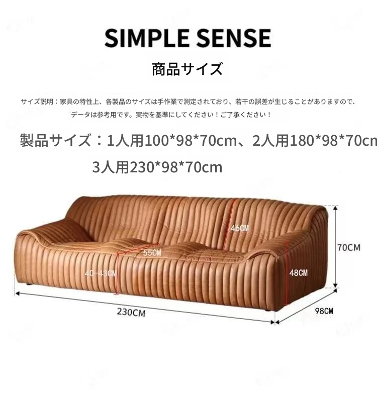 中古風波浪ソファー|現代リビングにぴったり!直線的な上質本革のユニークなアメリカンビンテージデザイン、3人掛けで接客にも最適!おしゃれな空間を演出します。