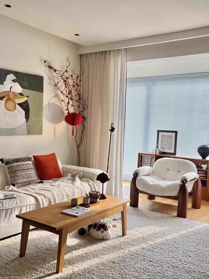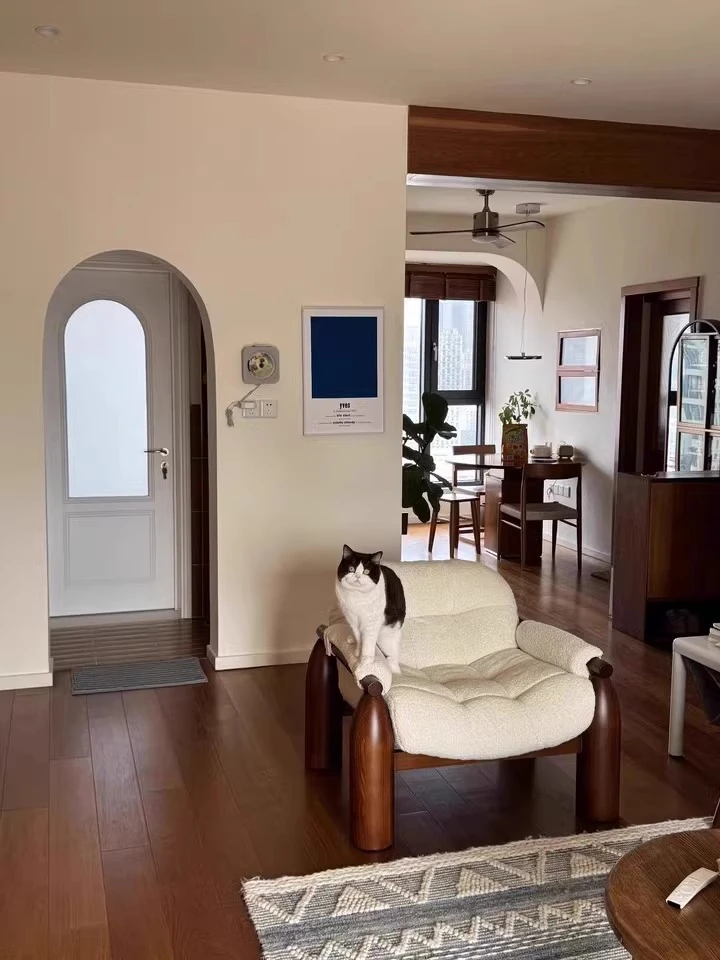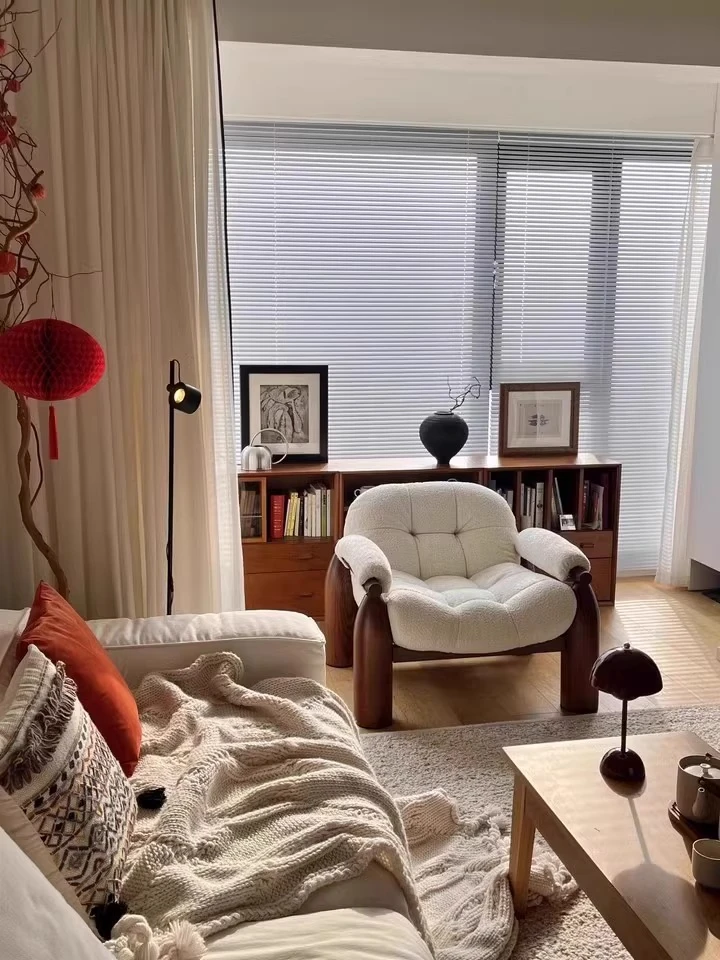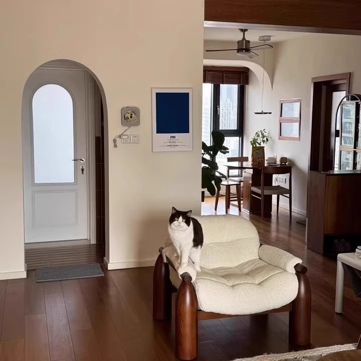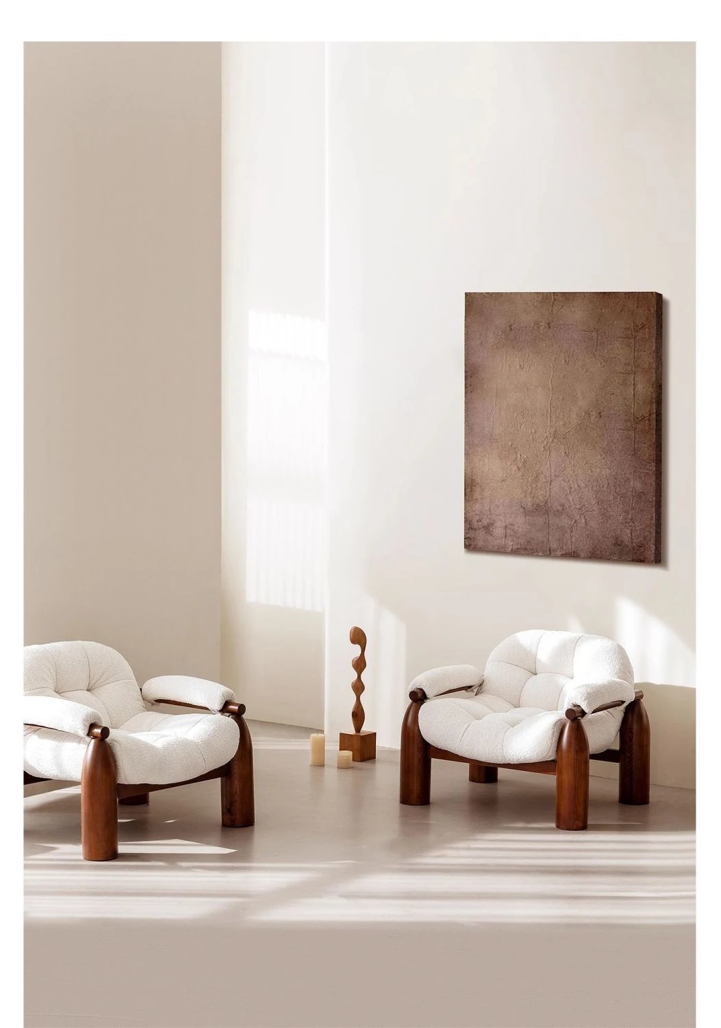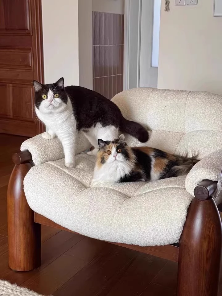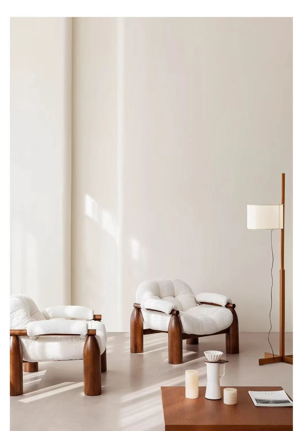 ヴィンテージ風の布製ラウンジソファチェア - デザイナーが手掛けたおしゃれな一人掛け、リビングや寝室に最適!小型住宅にもぴったりなウール素材のシープスキンチェアで、心地よいひとときを演出します。