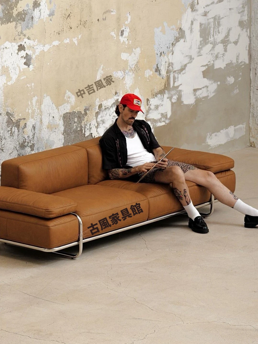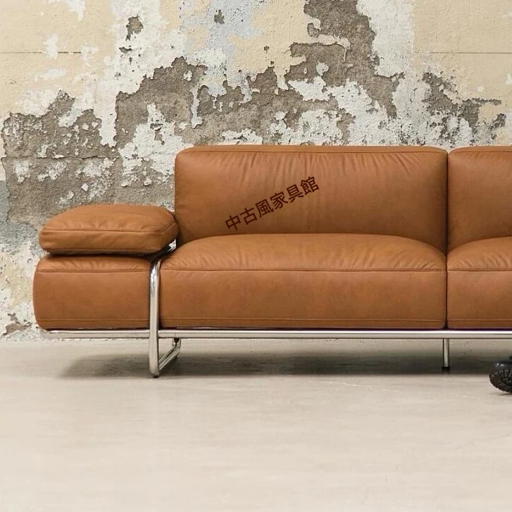 ヴィンテージ風の本革創作ソファ|リビングに最適なデザイナー3人掛けソファ|高級感溢れる贅沢な本皮使用|おしゃれで快適な空間を演出!
