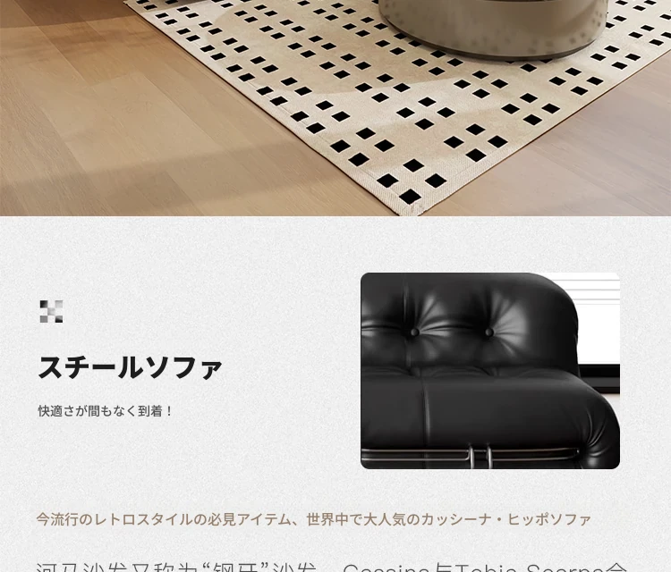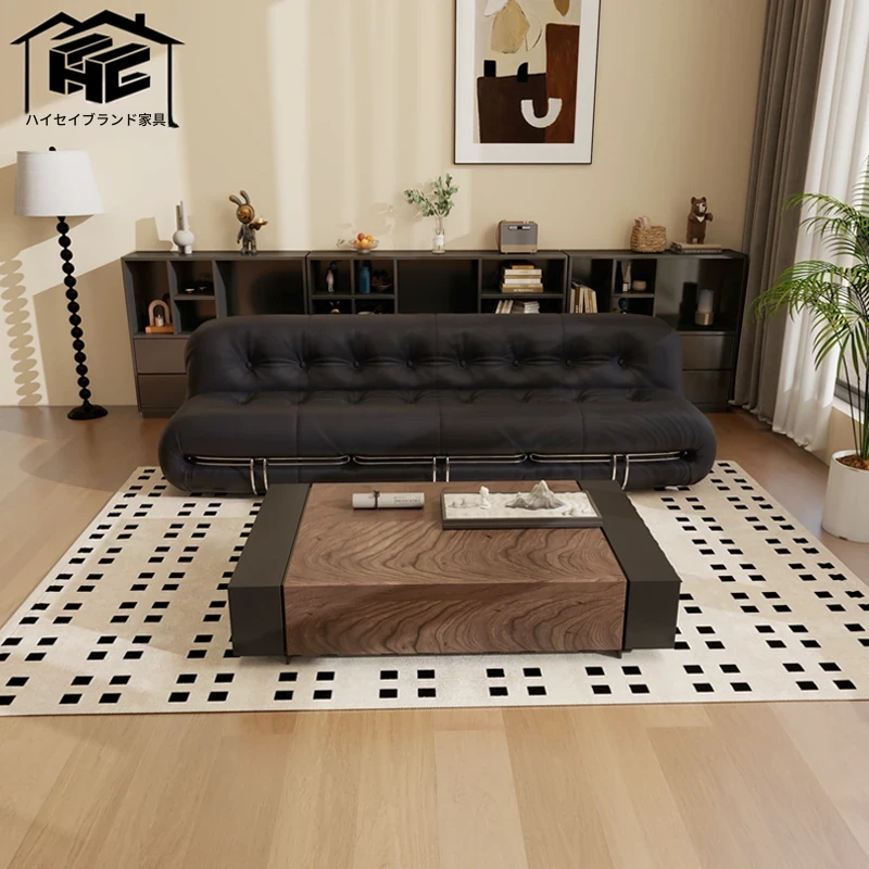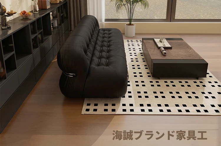 侘寂風のミニマリストデザイン!2024年新作、ハイエンド本革使用のヒョウ柄ブラックソファ。小さなお部屋にもぴったりな洗練されたイタリアンスタイルで、あなたのリビングをスタイリッシュに演出します。