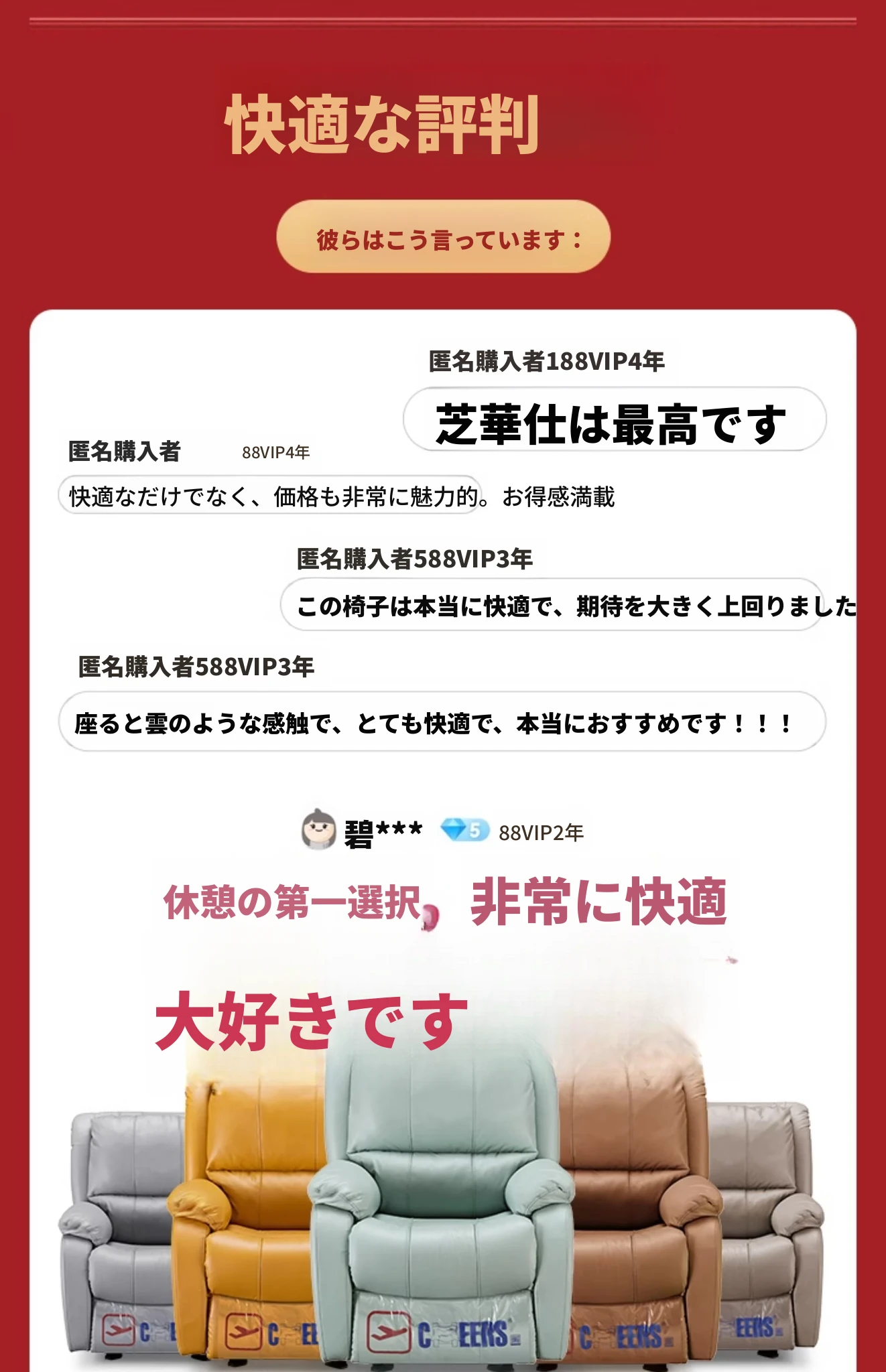 芝华仕の至高のリクライニングソファ - 電動レザー製、ラグジュアリーな一人用シートK621。オフラインと同じ機能を持ち、リラックスしたいあなたにぴったりの快適さを提供します。