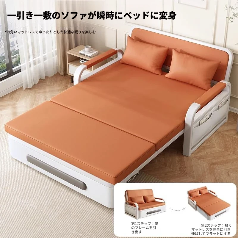 【香港送料無料】クリーミーな風合いのテクスチャーファブリック多機能ソファベッド!小さなリビングや寝室にぴったりのスタイリッシュなデザインで、快適さと実用性を兼ね備えています。あなたの家に最適なアイテムです!