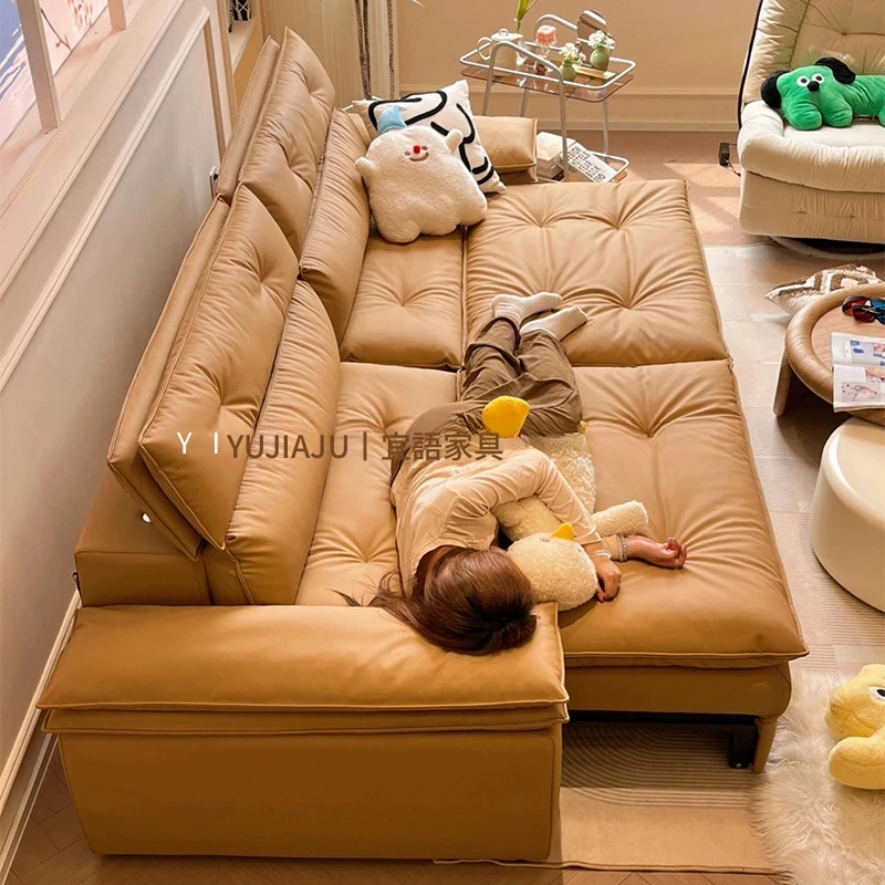 イタリアンレザー製ソファベッド|現代的でシンプルなデザイン|小さなスペースに最適|折りたたみ&伸縮機能付き|収納も充実した電動ソファベッド!快適なリラックス空間を実現。