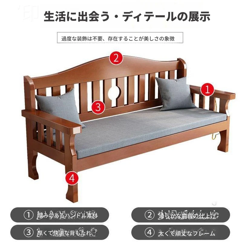 モダンな組み合わせの無垢材ソファ、シンプルでスタイリッシュな中式デザイン。小型住宅にぴったりなリビング用3人掛け長椅子。快適さと美しさを兼ね備えた一品!