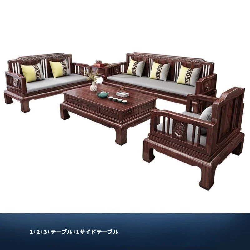 2025新作!金丝胡桃木製・実木ソファ|小型・中型住宅に最適な新中式デザイン|冬夏兼用&収納機能付き|おしゃれなリビングを演出する家具!