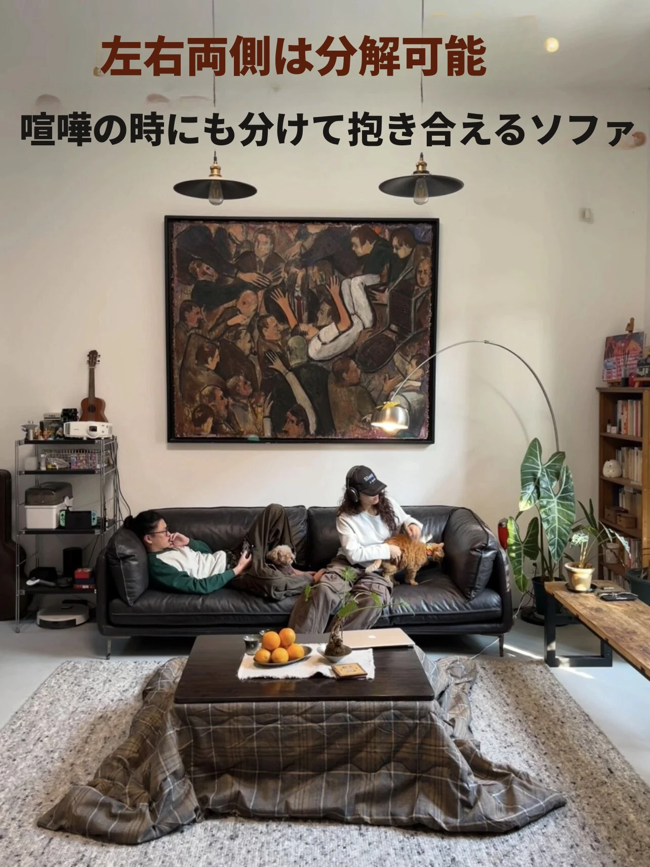 本革製ヴィンテージ風ブラックフレンチスタイルオイルワックスレザーソファー - モダンアメリカンデザイン、コンパクトな小部屋にも最適!優雅な雰囲気でお部屋を彩ります。